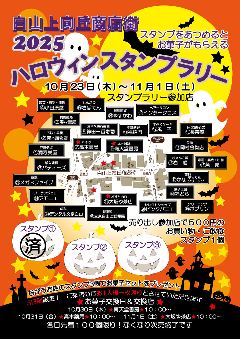 ハロウィンスタンプラリーのスタンプカードを配布いたします。